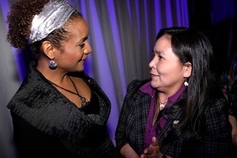 The evening was highlighted by the talented performances by Nunavik’s Elisapie Isaac, Inuk singer, and Taqralik Partridge, Inuk spoken word poet. The gala crowd watched with pleasure and in awe of the original performance of Artcirq, Igloolik’s Inuit circus performers. Nunavik Creations fashion designer Vicky Okpik made a dazzling fashion presentation with innovative sealskin garments.